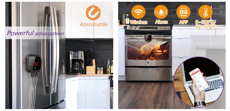 Wireless digital thermometer for cooking, grilling, BBQ, oven, meat, boiling and more!