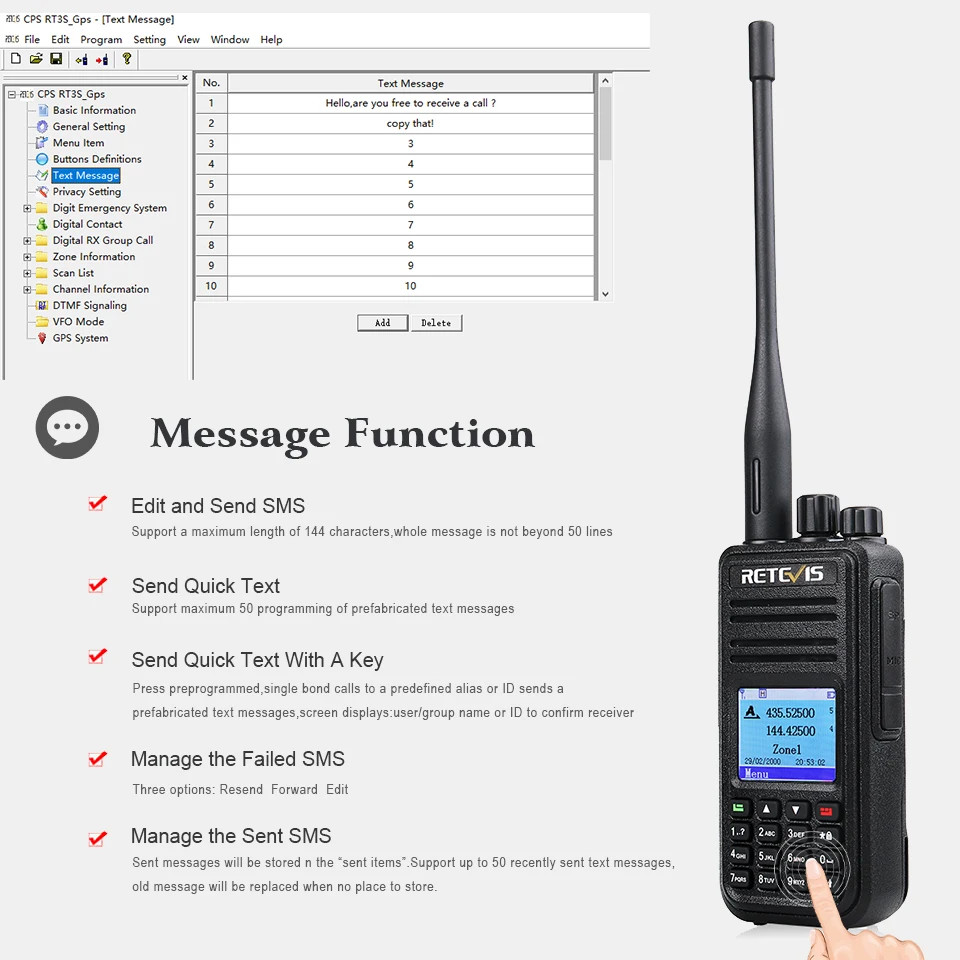 Q9: Does this support SMS? And is it compatible with digital or other HTs?